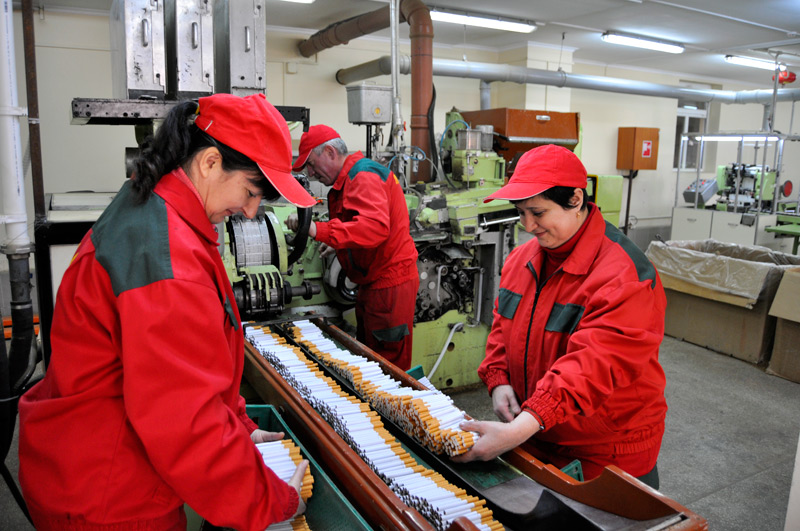 The production process is supplied with a complex of specialized departments and lots for preparing and processing oriental (“Oriental Blend”), British (“Virginia Blend”) and American (“American Blend”) cut tobacco blends and for preparing filtered and non-filtered cigarettes. The departments are supplied with high-efficiency production lines and modern control and measuring equipment of well-known engineering companies such as: HAUNI, MOLLINS, COMAS and other leading world companies.
