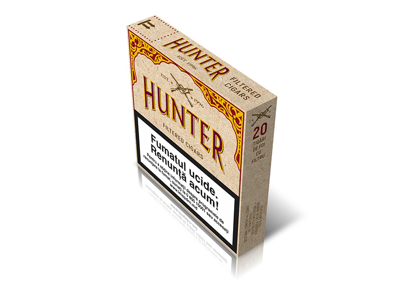 Cigarettes with a short filter Hunter are made of a mixture of American Blend tobacco cuts, consisting of Virginia, Burley, and Oriental tobaccos. This type of tobacco mixture has a deep, rich taste and aroma. Cigarettes are created for smokers who know a lot about tobacco and have high demands on quality and aesthetics.