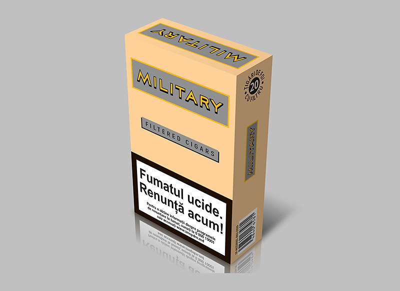 Сигареты с фильтром Military (формат King size) изготавливаются из резаной табачной смеси типа Аmerican Blend, состоящая из различных табаков Virginia, Burley, Oriental. Табачная смесь такого рода отличается глубоким, насыщенным вкусом и ароматом. Сигареты созданы для курильщиков знающих толк в табаке и предъявляющие высокие требованию к качеству и эстетике.